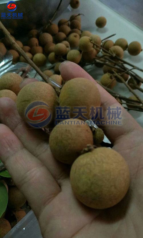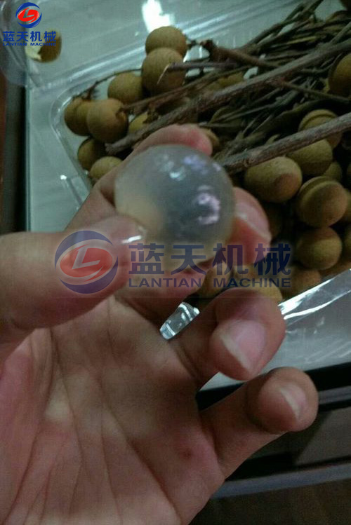 搖沙后,倒出龍眼果粒,用清水洗凈黏附在果殼表面的沙粒及磨下來(lái)的粉屑。