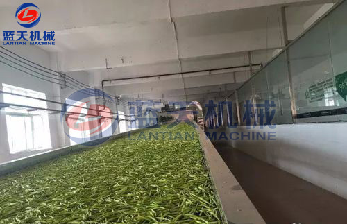 預(yù)煮處理后的蔬菜應(yīng)立即進(jìn)行冷卻(一般采用冷水沖淋),使其迅速降至常溫。冷卻后,為縮短烘干時間,可用離心機(jī)甩水,也可用簡易手工方法壓瀝,待水瀝盡后,就可攤開稍加涼曬,以備裝盤烘烤。