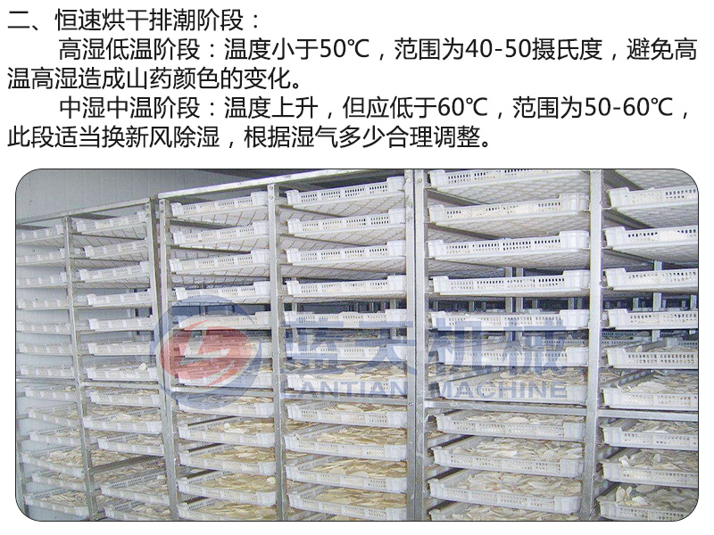 山藥的含水量大不宜長期儲存,所以為了山藥的長期保存,一般把山藥切片后用山藥烘干機(jī)進(jìn)行烘干處理。山藥切片的厚薄、烘干溫度、烘干時間的把控對于山藥片的烘干效果很重要。小編給大家介紹下使用山藥烘干設(shè)備烘干上藥片的烘干過程。
