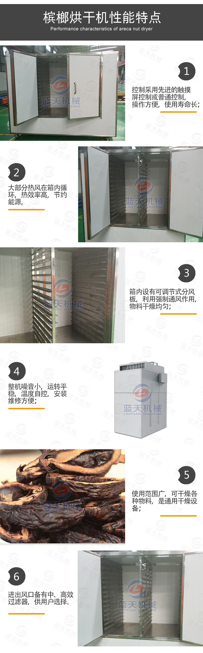 1、采用熱泵檳榔烘干機(jī)對(duì)檳榔進(jìn)行烘干處理,烘干過(guò)程能耗低,有效減少運(yùn)行成本。