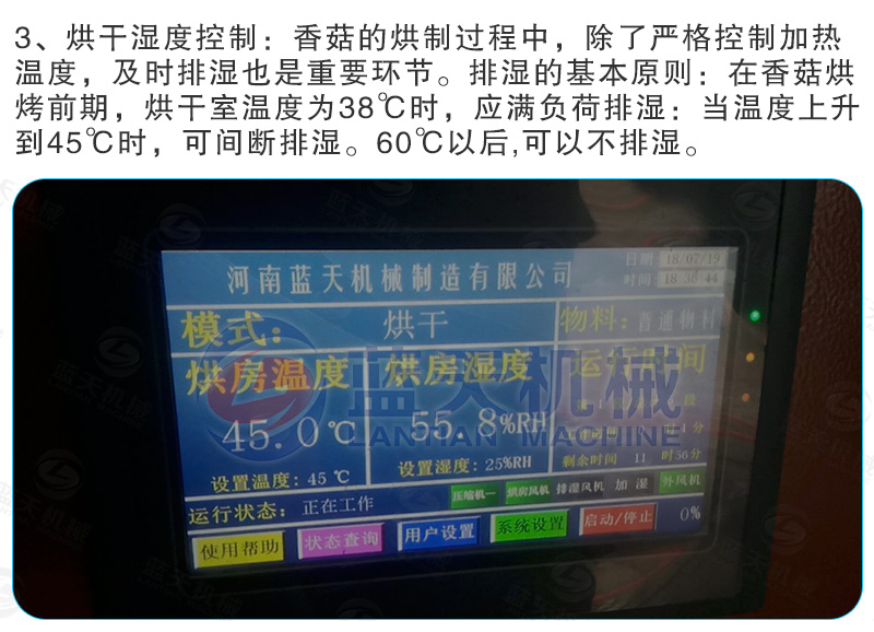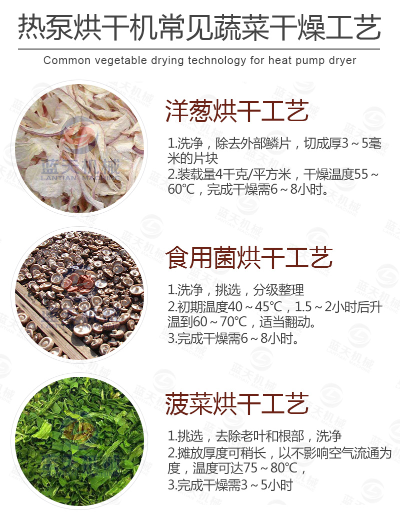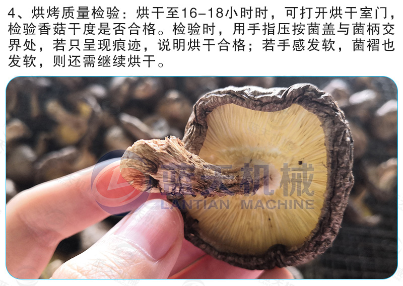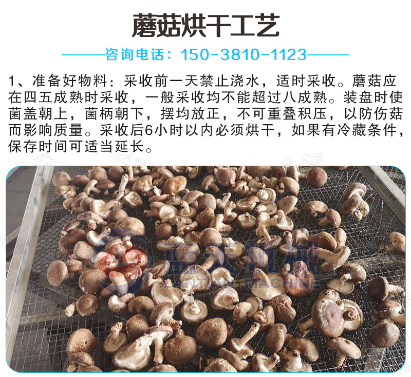 (3)烘干質(zhì)量好——蘑菇烘干機(jī)裝置中的干燥介質(zhì)是在封閉的空間循環(huán);不受外界氣候條件的影響,一年四季在同一條件下運(yùn)行,所以烘干干燥的質(zhì)量非常良好。