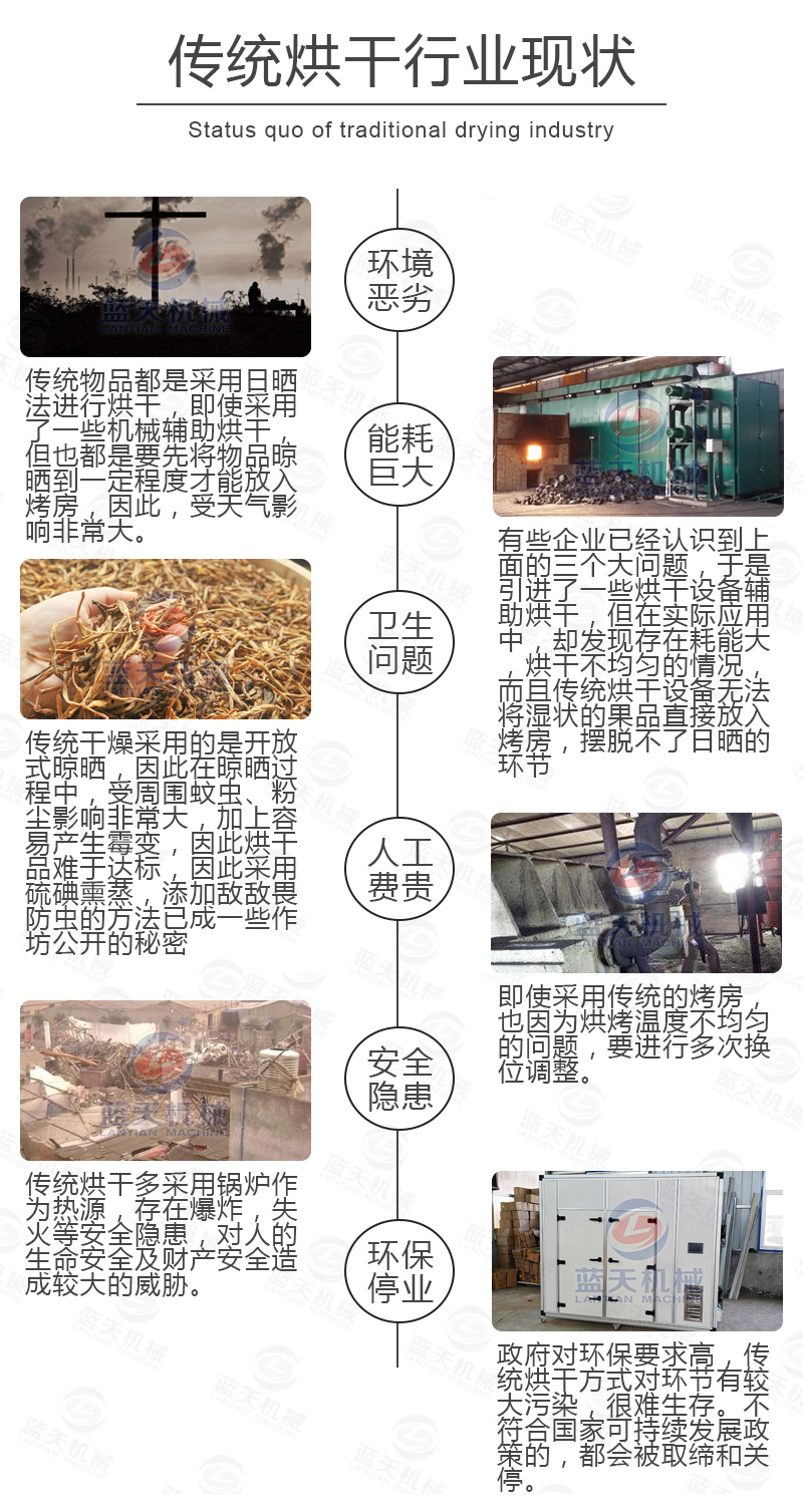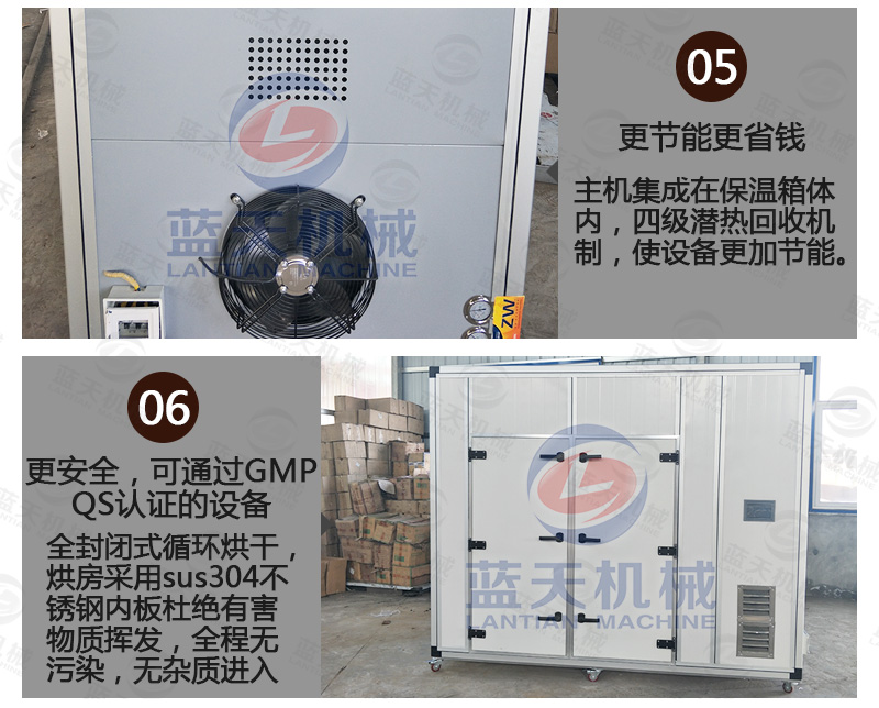 (7)設(shè)備運(yùn)行沒有三廢的排放,不需要鍋爐或者燒煤燒柴,設(shè)備主要是吸收空氣中熱量對物料進(jìn)行烘干,真正實(shí)現(xiàn)節(jié)能生產(chǎn)。