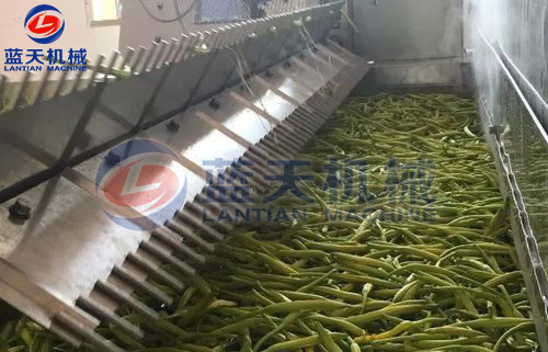 將洗干凈的原料根據(jù)產(chǎn)品要求分別切成片、絲、條等形狀。預(yù)煮時,因原料不同而異,易煮透的放沸水中焯熟,不易煮透的放沸水(水溫一般在150℃以上)中略煮片刻,一般燙漂時間為2~4分鐘。葉菜類最好不燙漂處理。
