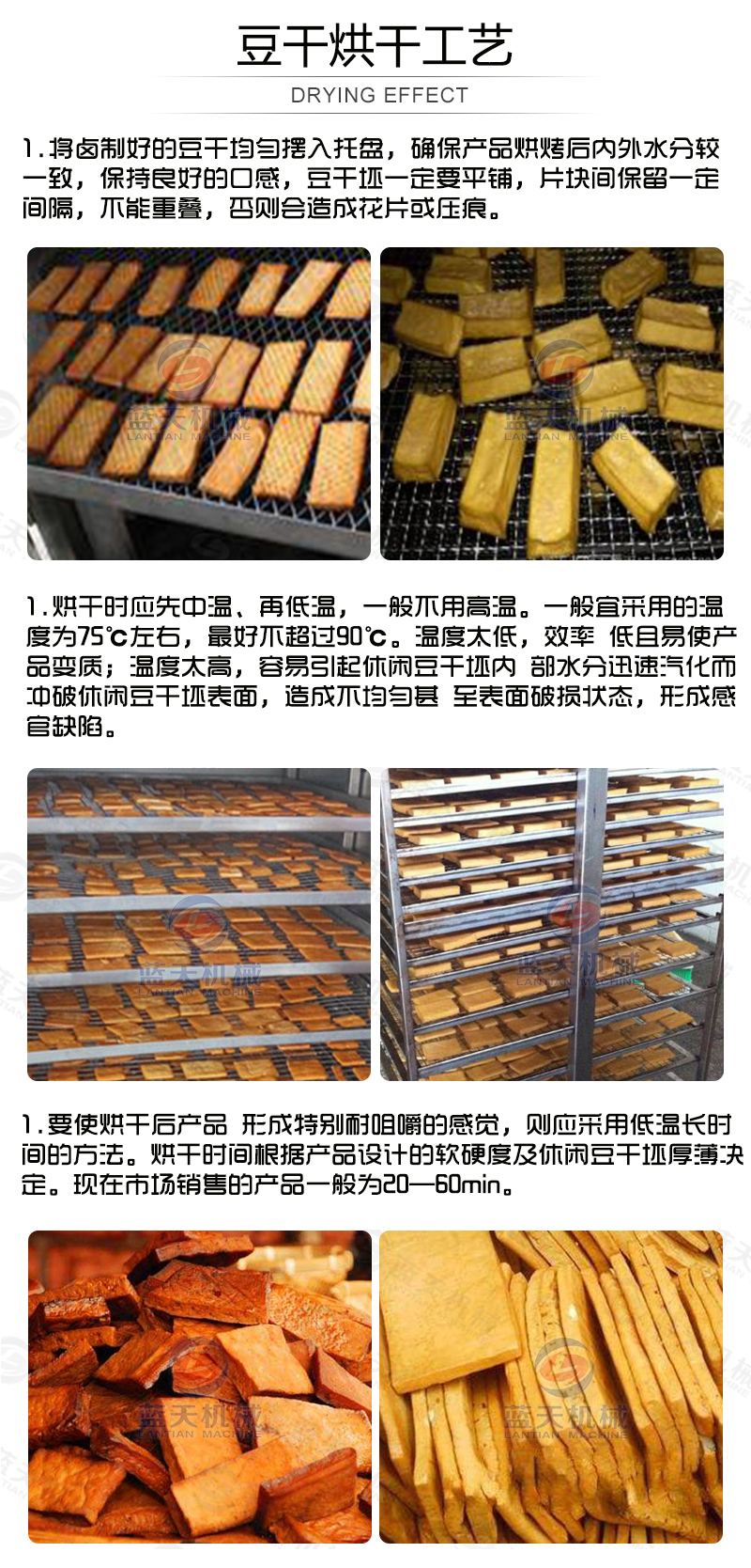 豆腐干烘干機(jī)之豆腐干烘干工藝: